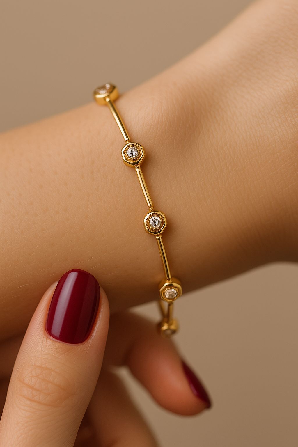 14K Altın Zirkon Taşlı İnce VIP Bileklik