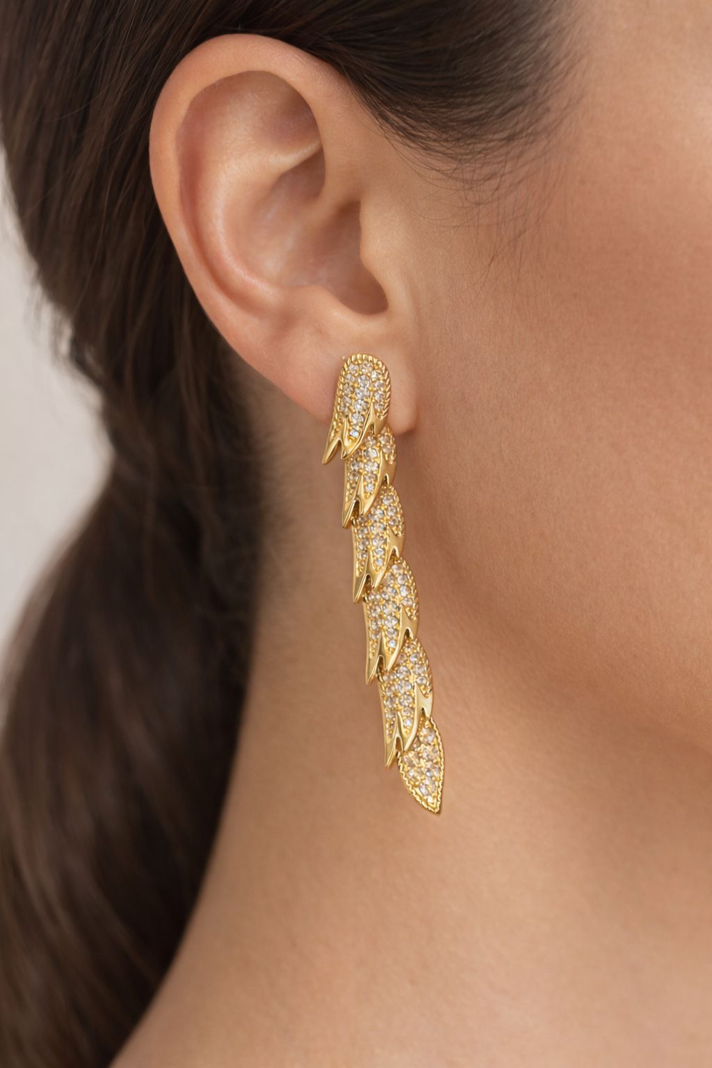 Bu şık küpeler, günlük yaşamda rahatlıkla kullanılabileceği gibi, özel davetlerde ve etkinliklerde de göz dolduracaktır. Düğünler, nişanlar ve özel kutlamalar gibi anlamlı anlarda, Balık Kuyruğu Işıltı Küpe mükemmel bir aksesuar tercihi olacaktır.