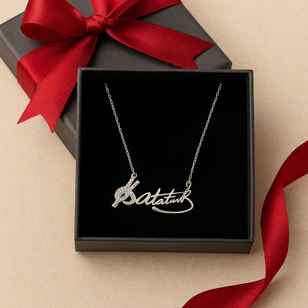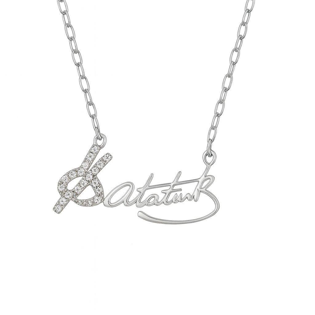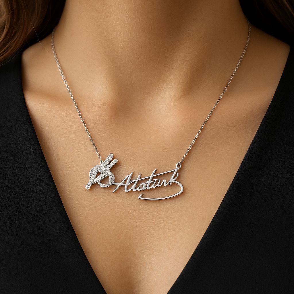925 Ayar Gümüş Atatürk İmzalı Kolye – Işıltılı Zarafet