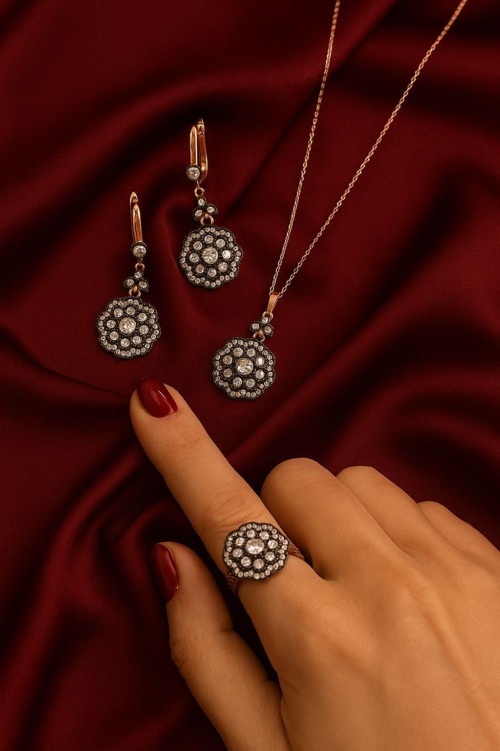 - Set İçeriği: Kolye, Küpe ve Bilezik