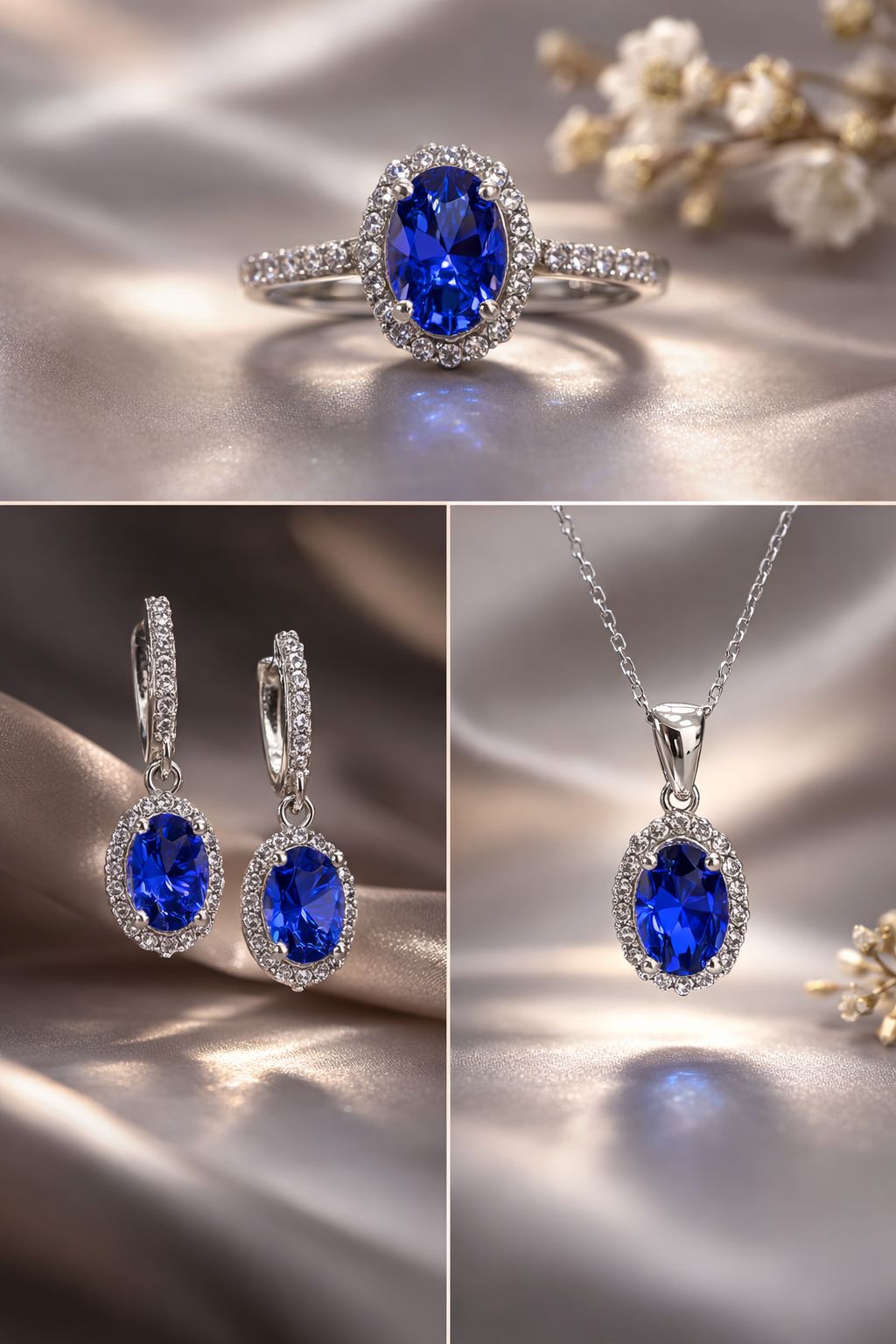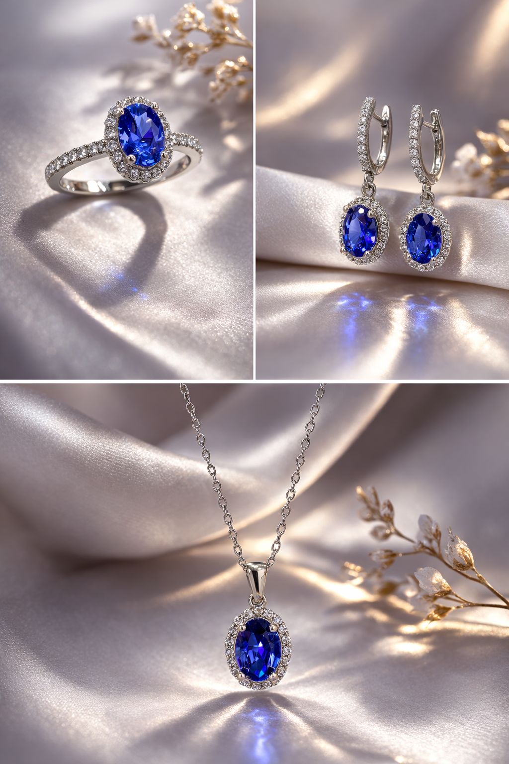 925 Ayar Gümüş Tanzanit Taşlı Set – Kolye Küpe Yüzük Takımı