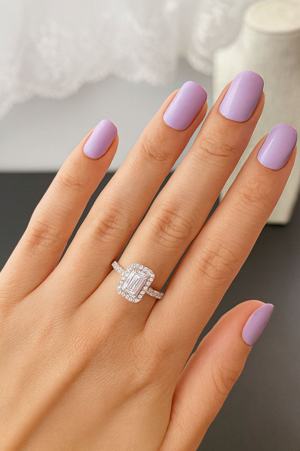Yüzüğün merkezinde yer alan baget kesim taş, ışıkla dans ederek muhteşem bir parlaklık sergiler. Özel kesim taşların etrafında yer alan küçük zirkon taşlar, yüzüğe ekstra bir ışıltı katarken, zarif bir çerçeve ile desteklenmiştir. Yüzüğün minimalist ancak etkileyici tasarımı, onu hem günlük kullanıma hem de özel günlere uygun hale getirir.