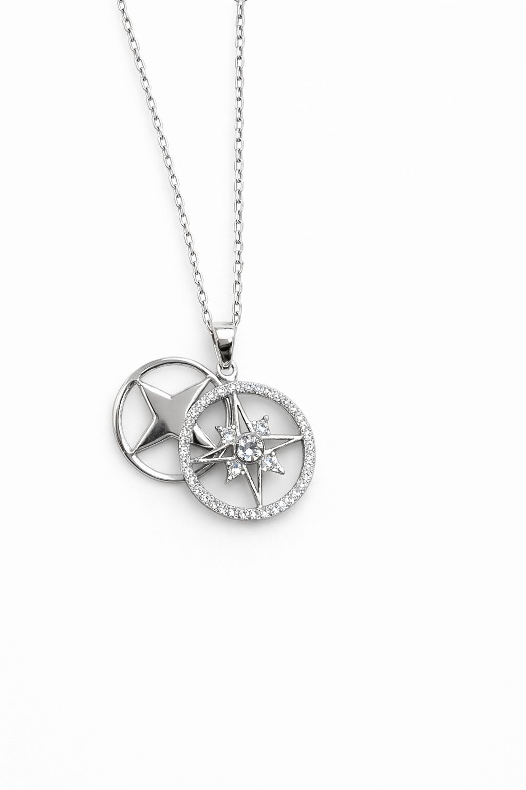 Çiftli Kutup Yıldızı Kolye – 925 Ayar Gümüş Işıltılı Pusula Tasarım