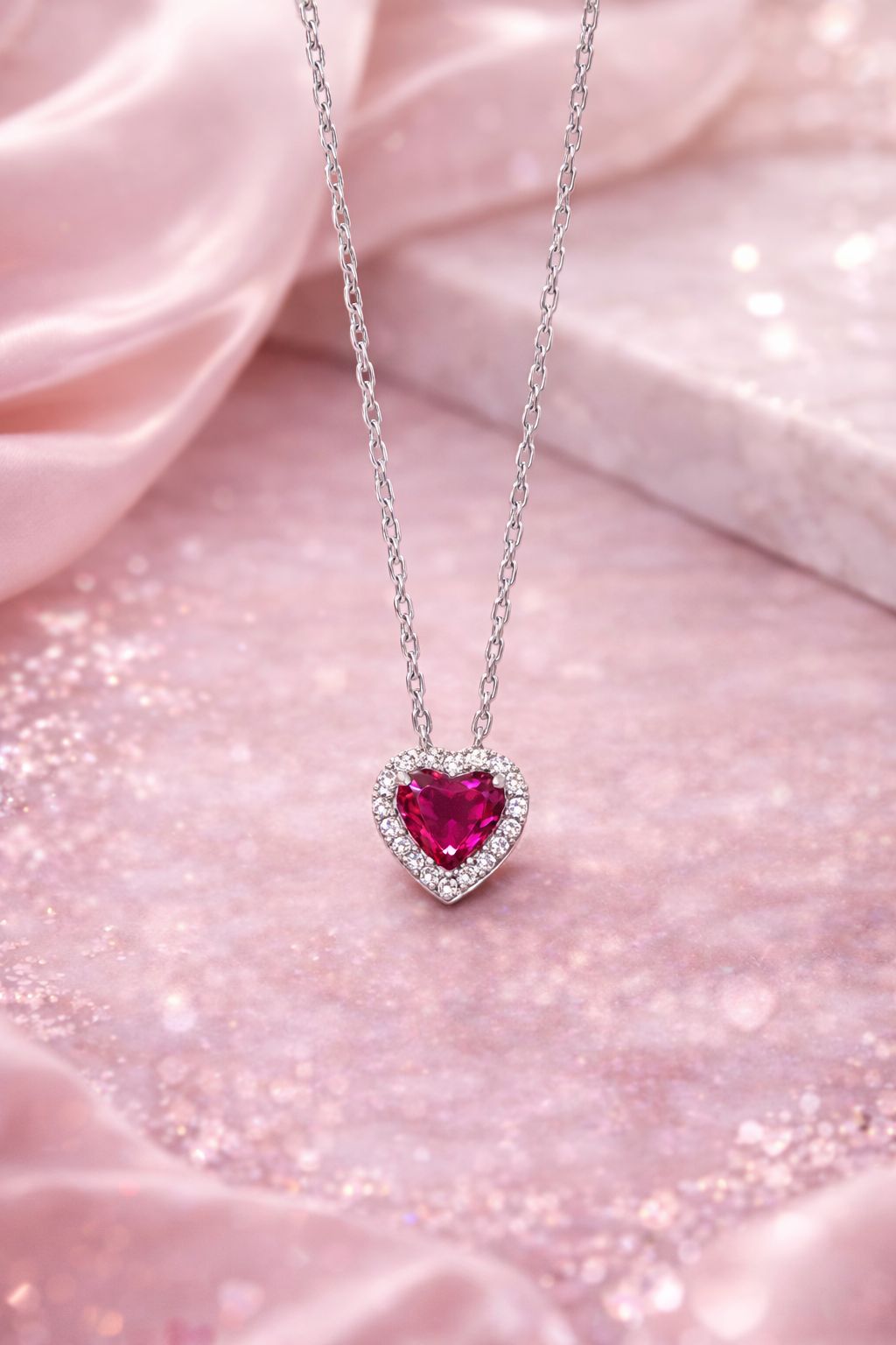 Kalbimde Işıntı – Kırmızı Taşlı Gümüş Kalp Kolye