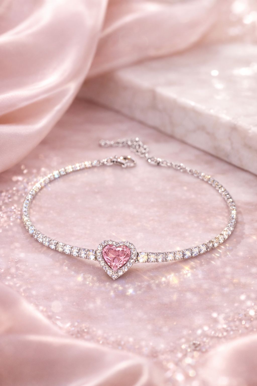 Kalbimin Işıltısı Pembe Kalp Bileklik