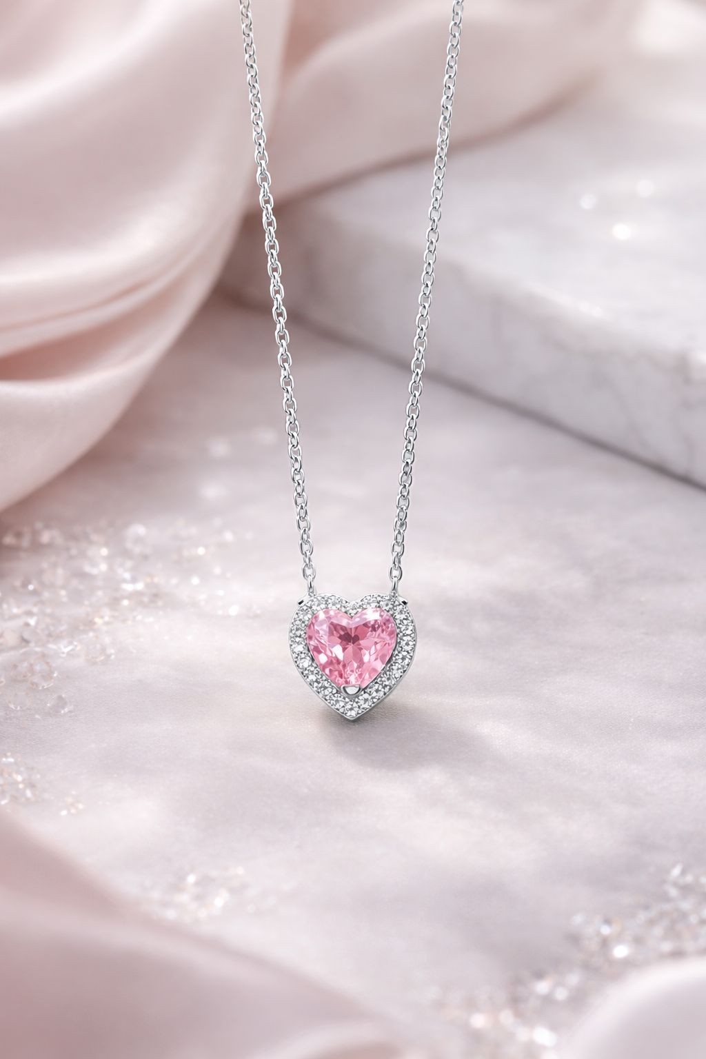 Kalbimin Işıltısı Pembe Kalp Kolye