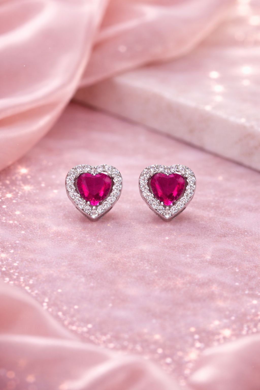 Kırmızı Kalp Işıltısı Gümüş Küpe