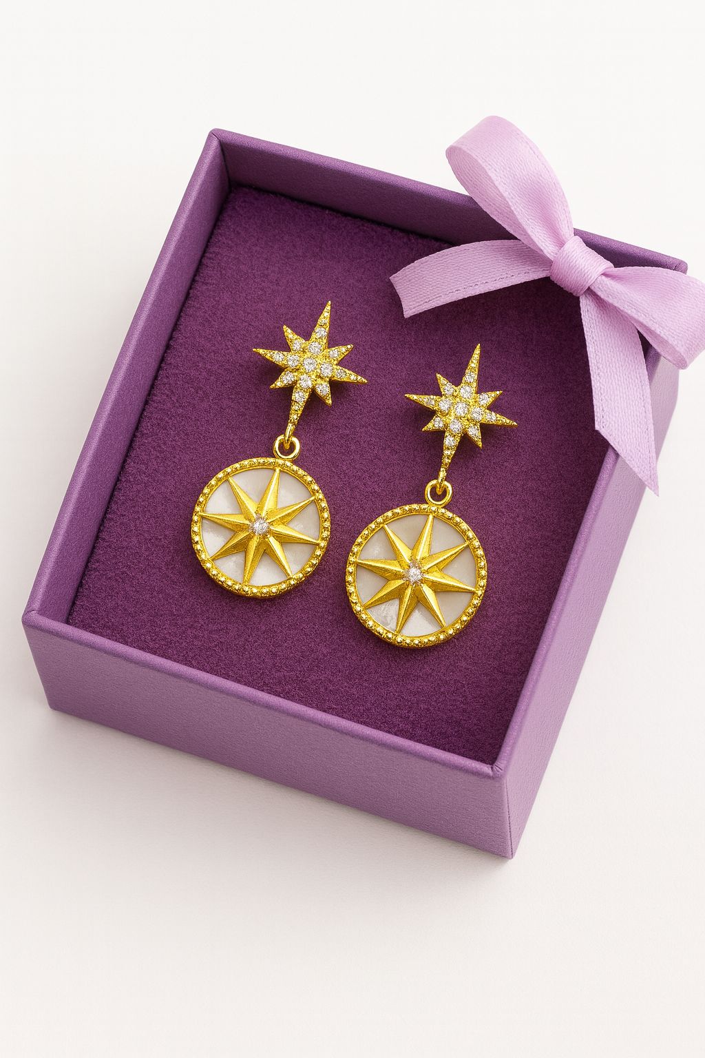 Kutup Yıldızı Detaylı 925 Ayar Gold Mineli Küpe