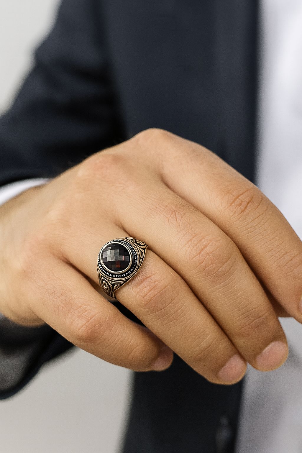 Lal Granat Taşlı Antik Gümüş Erkek Yüzük, hem özel günlerde hem de günlük hayatta rahatlıkla kullanabileceğiniz bir üründür. Düğünler, nişanlar ya da özel davetlerde şıklığınızı tamamlayacak bir aksesuar olarak öne çıkarken, günlük kullanımda da iş ve sosyal hayatınızı destekleyecek zarif bir parça olma özelliği taşır. Her ortamda dikkat çekmek isteyen erkekler için ideal bir seçimdir.