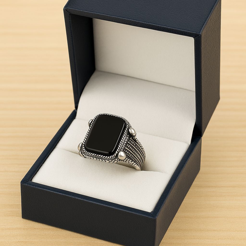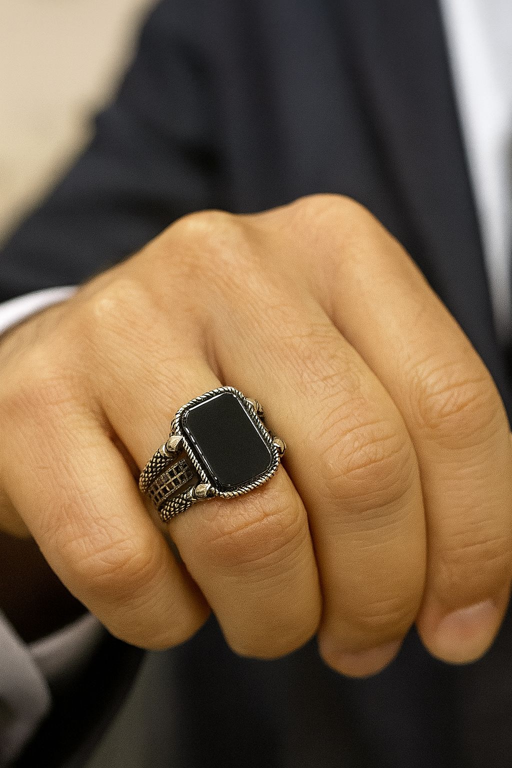 Modern Oniks Taşı 925 Gümüş Erkek Yüzük