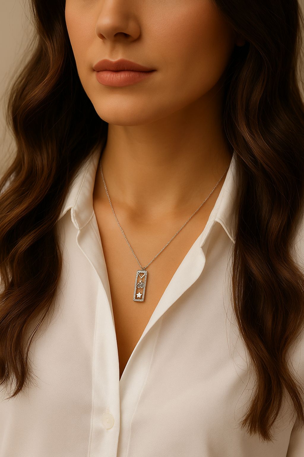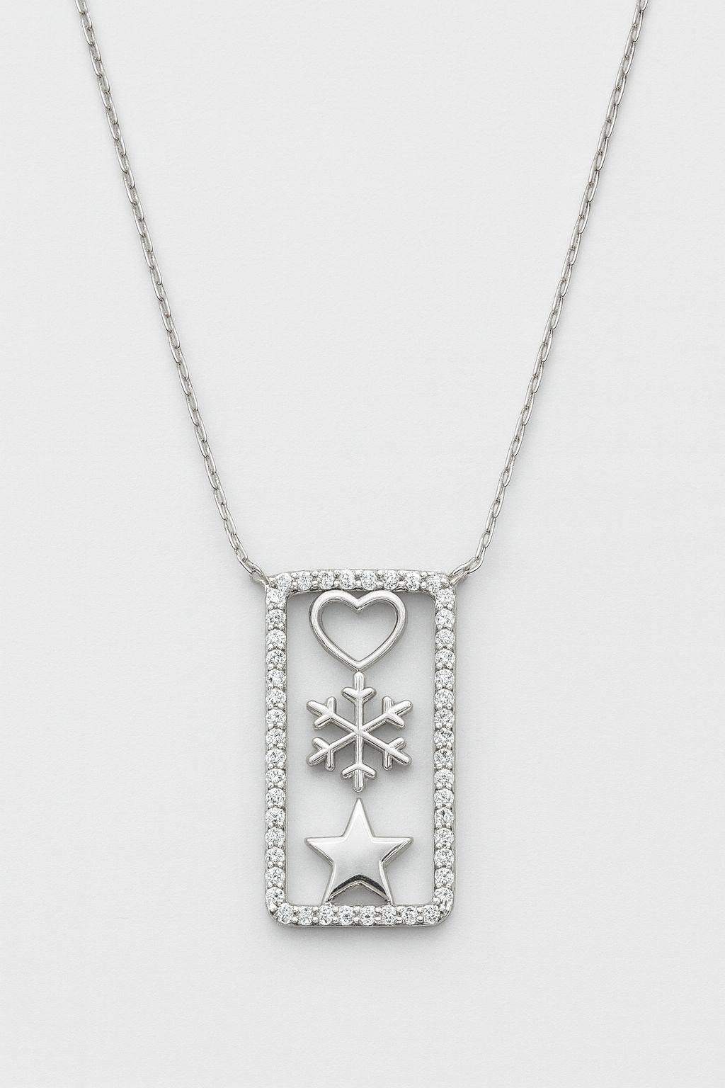 Sihirli Şans Kolyesi – Kalp, Yıldız ve Kar Tanesi Detaylı 925 Ayar Gümüş