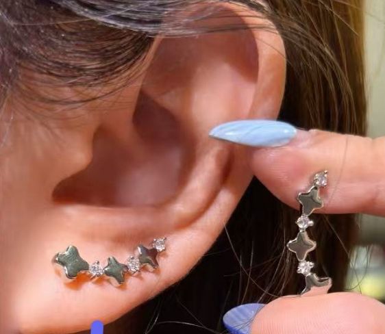 Bu küpe, modern ve klasik unsurları bir araya getiren şık bir tasarıma sahiptir. Yonca motifi, şans ve bereket sembolü olarak bilinirken, kullanılan taşlar da çevrelerine pozitif enerji yayar. Çoklu küpe yapısıyla, farklı şekillerde kombinlenebilir ve her seferinde yeni bir stil ortaya çıkarabilir.