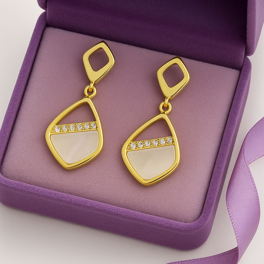 Zarif Gold Mineli ve Taş Detaylı Küpe