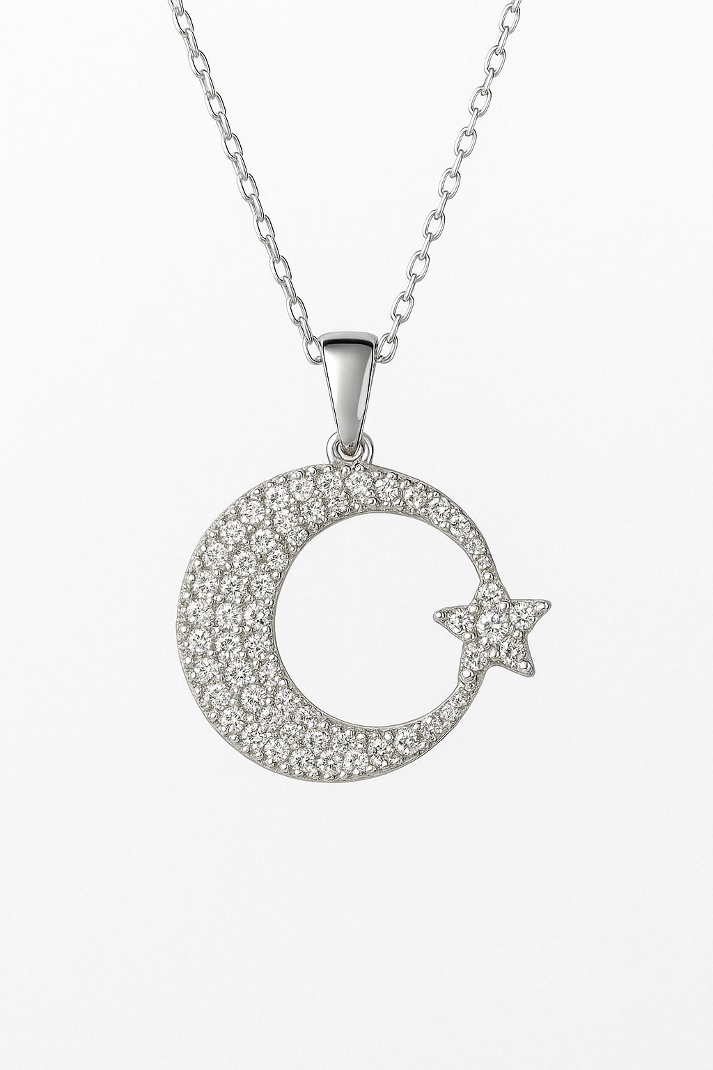 Zirkon Taşlı Ay Yıldız Kolye – 925 Ayar Gümüş Işıltı